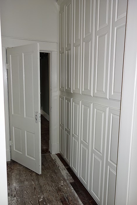 The entry way received a few old lockers for storage {before paint}.
